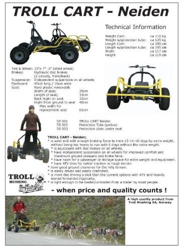 Das Troll Cart Neiden II ist derzeit ab Lager Uchte (Niedersachsen) lieferbar. Der Troll Neiden IIb kostet Eur 3490,- ab Lager Uchte (Nds) Ab Juni/July ein Troll Cart Neiden IIb als Vorführ Cart verfügbar (Eur 3100,-) Preise sind Abholungs- und Barzahlungspreise inkl. derzeit gültiger deutscher MwSt (19%). Info Telefon: +49.5763.943-2950 Infomail: fca.ltd(at)web.de ![]() Zufriedene Kunden kommen aus Norwegen, Schweden, den Niederlanden, Deutschland und sogar aus Canada. |
